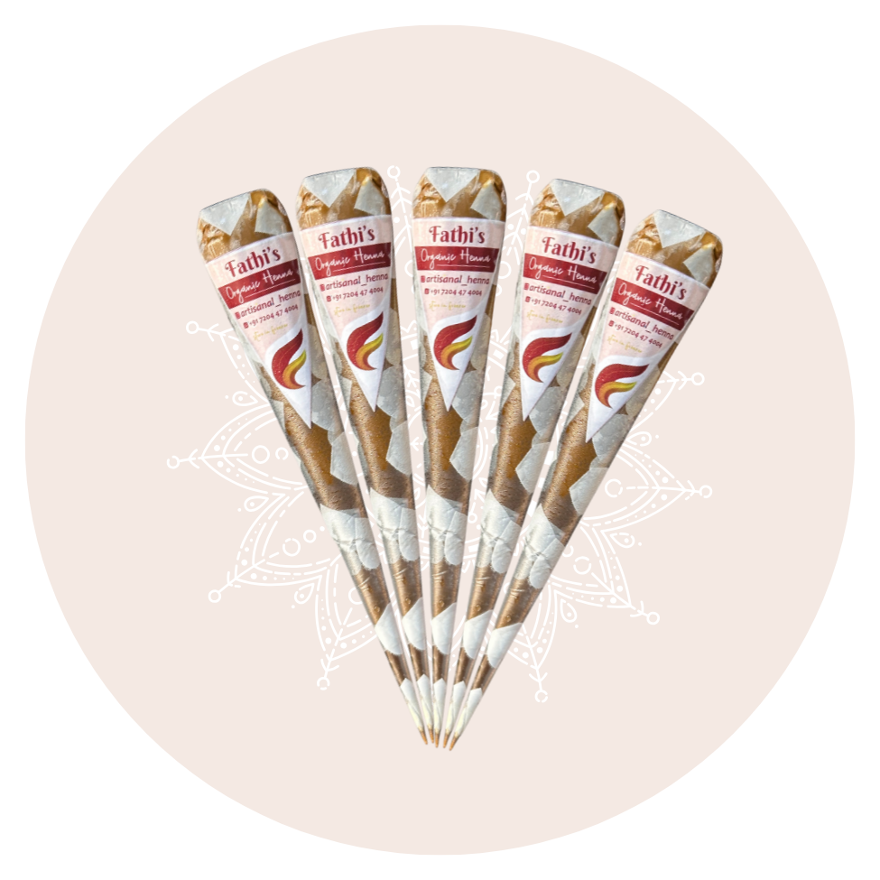 Fathi's Organic Henna Cones 100% organic, chemical-free henna for rich, long-lasting stains. Perfect for bridal mehndi, festive designs, and natural nail tinting.